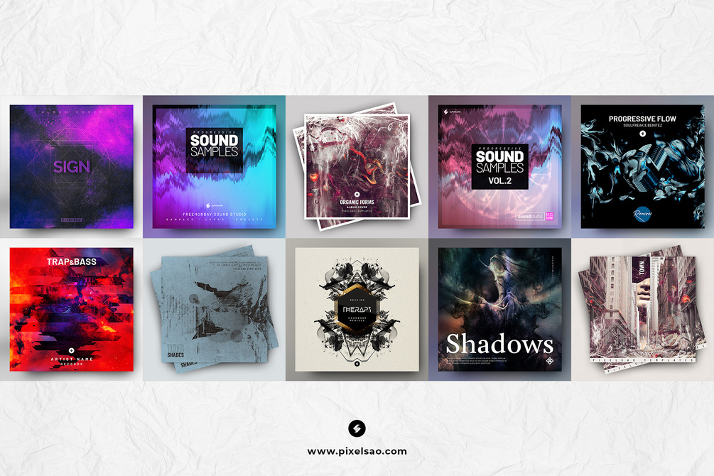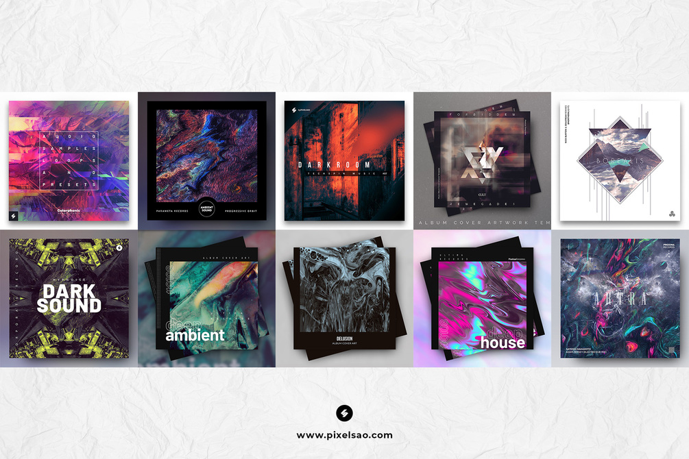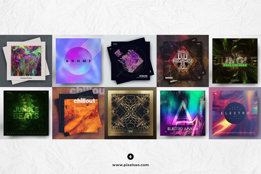Electronic music album cover artwork PSD templates for DJs and music producers. Best for various music genres such as progressive house, trance, psytrance, electro, techno, tech-house, minimal, house music, deep house, acid house, tribal house, drum and bass, jungle, liquid funk, neurofunk, dubstep, trap music, chillout music, chillstep, alternative electronica, breakbeat, ambient, electronic music samples, sample loops, audio presets, audio podcasts, etc.