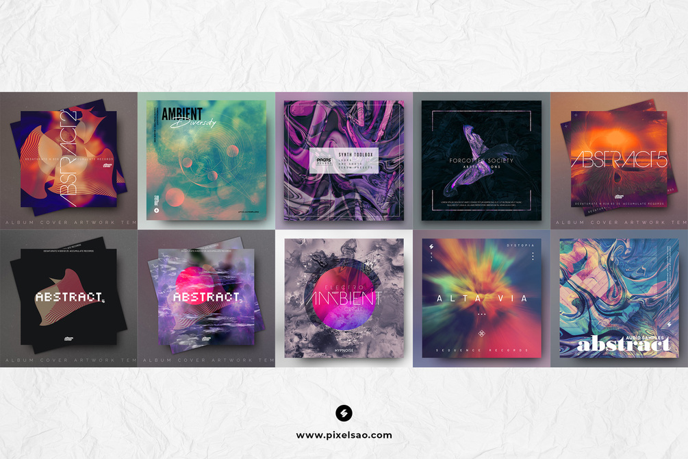 50 Abstract Design Album Cover Artwork Templates Bundle.