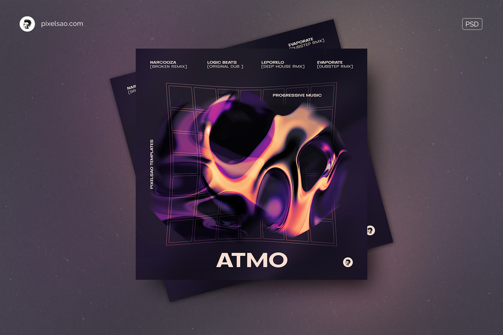 Abstract artwork design for electronic music album cover, or audio podcast cover. Customizable Photoshop PSD template for DJs, bands, and music producers. Best for progressive electronic music genres such as progressive house, techno, tech-house, deep house, electro, drum and bass, trance, ambient, alternative electronica, dubstep, rave, etc. Fits for an album cover, mixtape cover, Instagram post banner, cover image artwork for iTunes, Beatport, Soundcloud, Mixcloud, Spotify, Hearthis, Amazon music, audio podcast, etc.