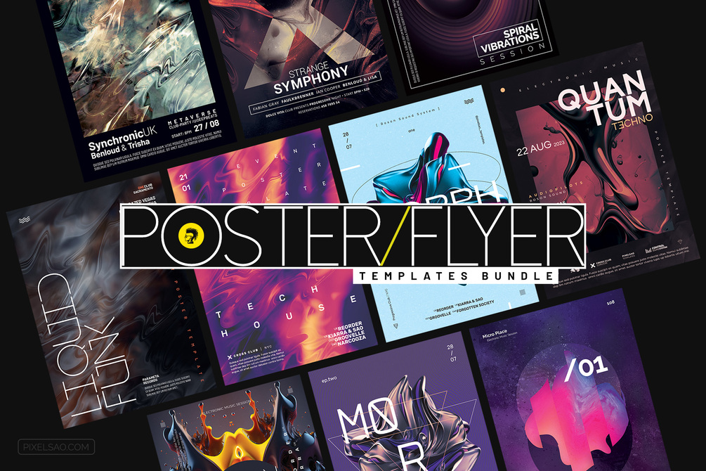 - Photoshop PSD files | 10 Poster + Flyer Templates (2x10 PSDs)