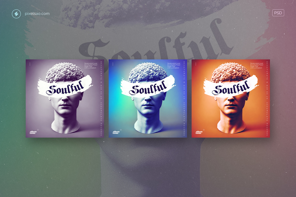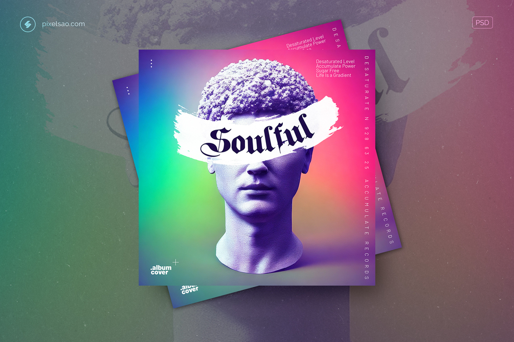 Colorful creative design for a music album, or audio podcast cover. Vibrant color gradient album cover, or digital flyer editable Photoshop PSD template. Best for various electronic music genres such as Soulful House, Drum and Bass, Melodic Techno, Deep House, Organic House, Liquid Funk, Chillout, Rave, Dubstep, Trap Music, Progressive House, Alternative Electronica, Nudisco, house music, etc.