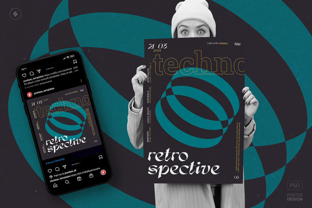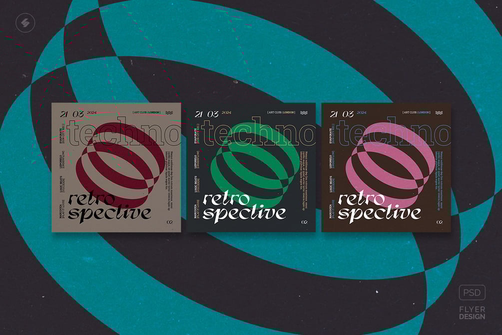 Alternative electronic music DJ club party flyer and event poster design Photoshop PSD template for various genres of electronic music sessions like techno, minimal, tech-house, dub techno, organic house, alternative electronica, deep house, trap music, house music, liquid funk, drum and bass, dubstep, world music, indie music, experimental music, chillout, downtempo, etc.