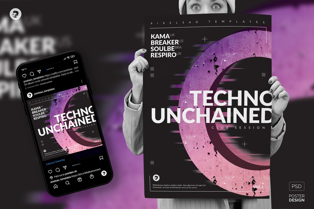 Techno Unchained – Poster, Flyer Template